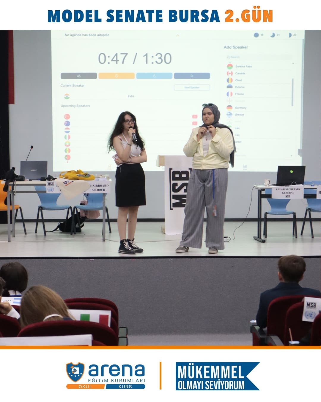 Okulumuz bünyesinde, lise öğrencilerimizin girişimiyle kurulan MODEL SENATE BURSA organizasyonu kapsamında, okullar arası düzenlenen MUN (Model United Nations) etkinliğimizin ilk günü başarıyla tamamlandı!